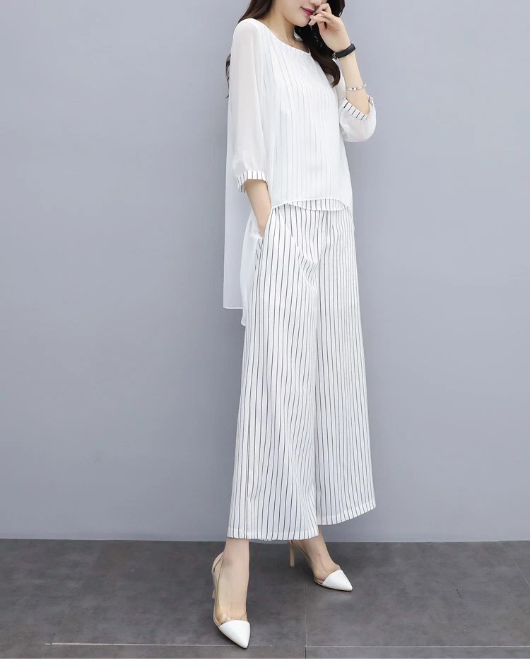 블라우스 & 와이드 팬츠 2종 세트